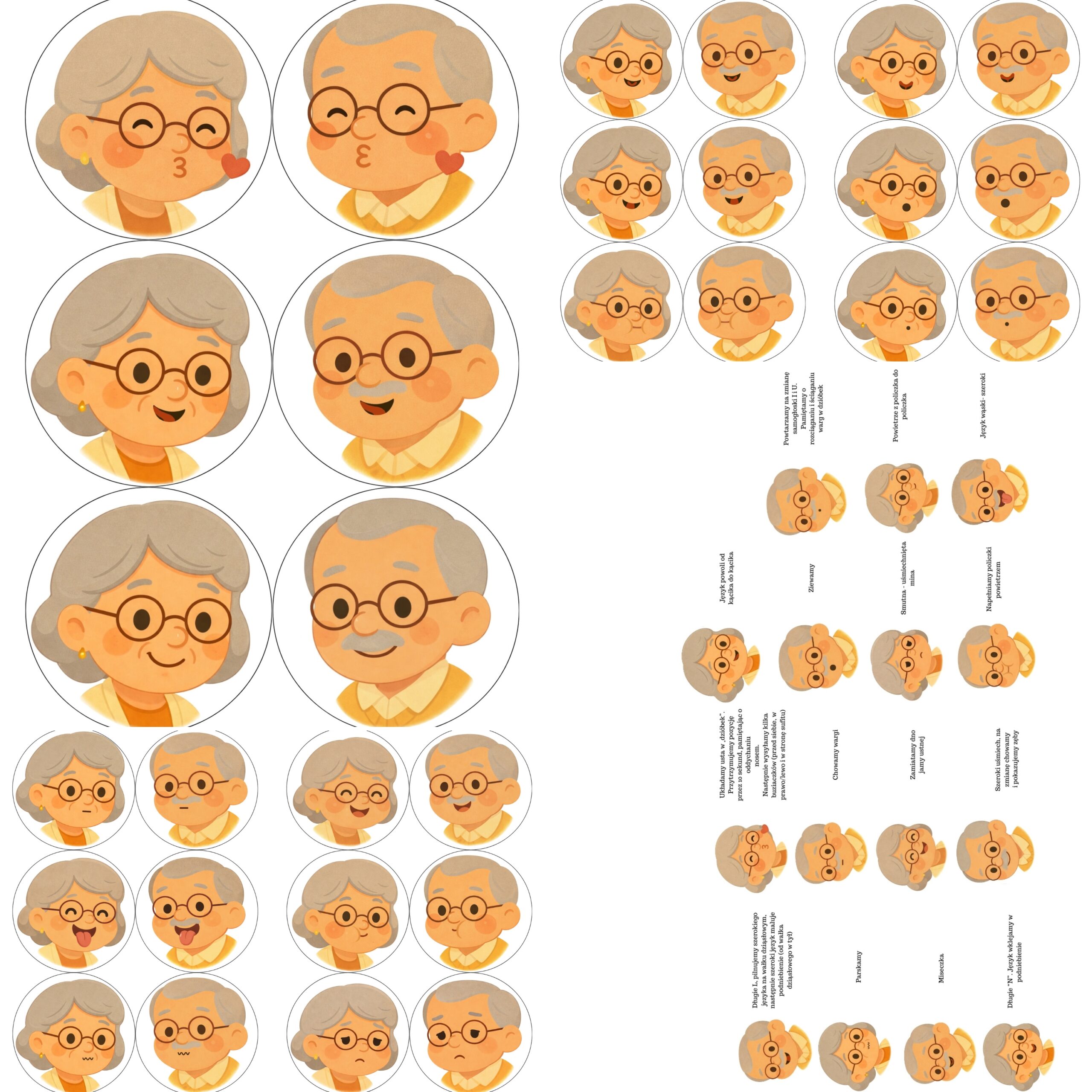 „Memory logopedyczne – Babcia i Dziadek” to materiał terapeutyczny przeznaczony do ćwiczeń artykulacyjnych z dziećmi w wieku przedszkolnym i wczesnoszkolnym. Gra w formie klasycznego memory wspiera rozwój sprawności aparatu mowy poprzez zabawę, sprzyjając utrwalaniu prawidłowych ruchów języka, warg i policzków.