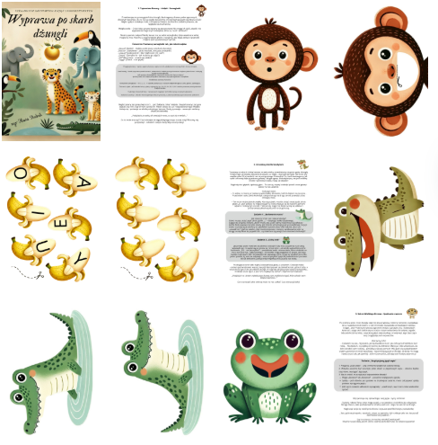 ✔ Pełny scenariusz zajęć logopedycznych – dzieci wcielają się w odkrywców, rozwiązując zagadki i pomagając zwierzętom dżungli