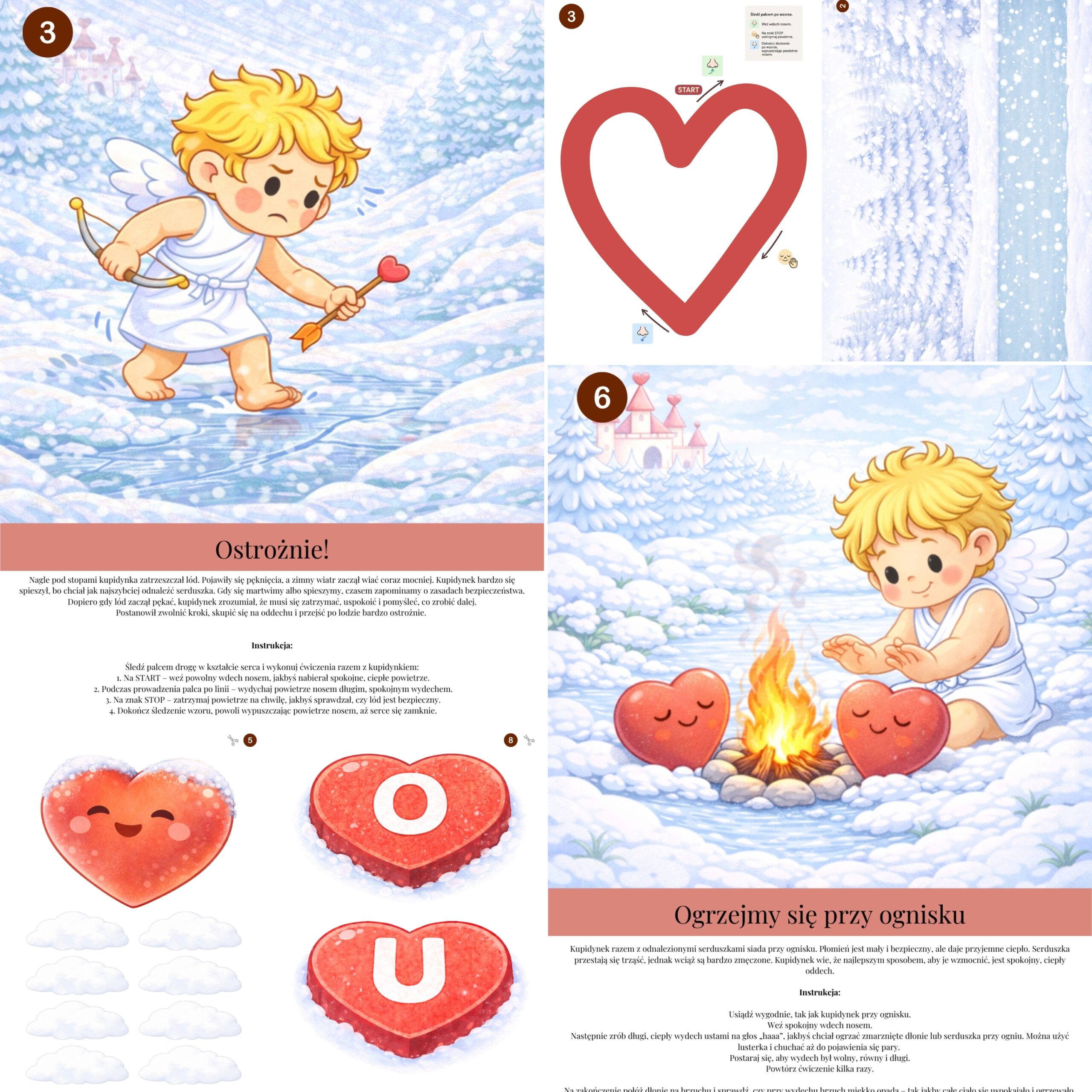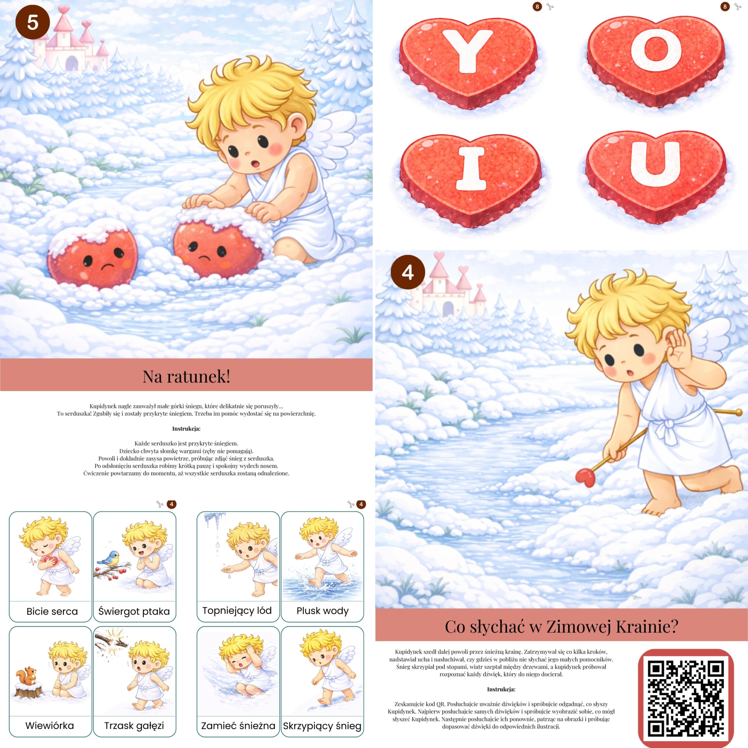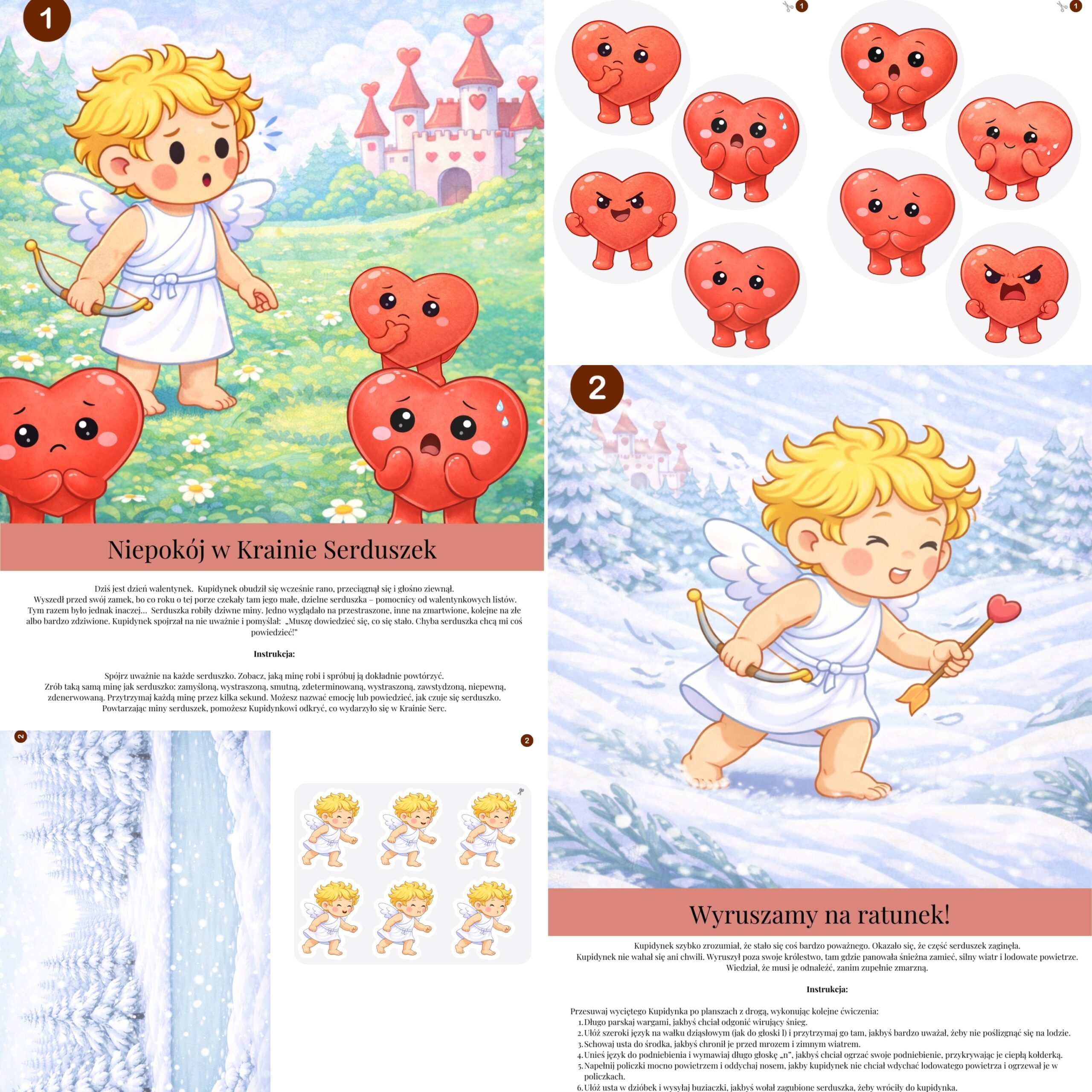 Zadania osadzone są w zimowo-walentynkowej fabule, dzięki czemu dzieci chętnie uczestniczą w ćwiczeniach, a terapia przebiega w formie zabawy.