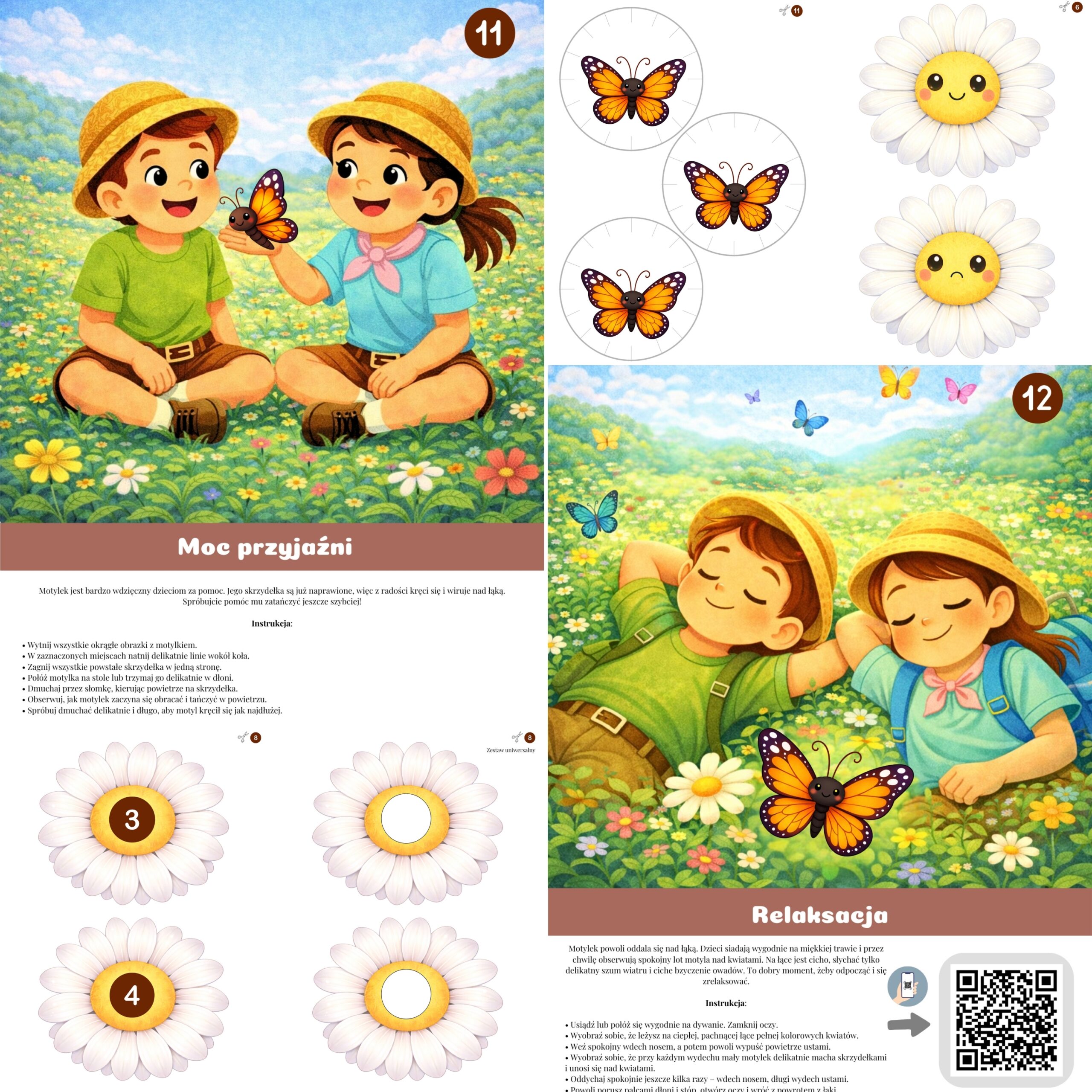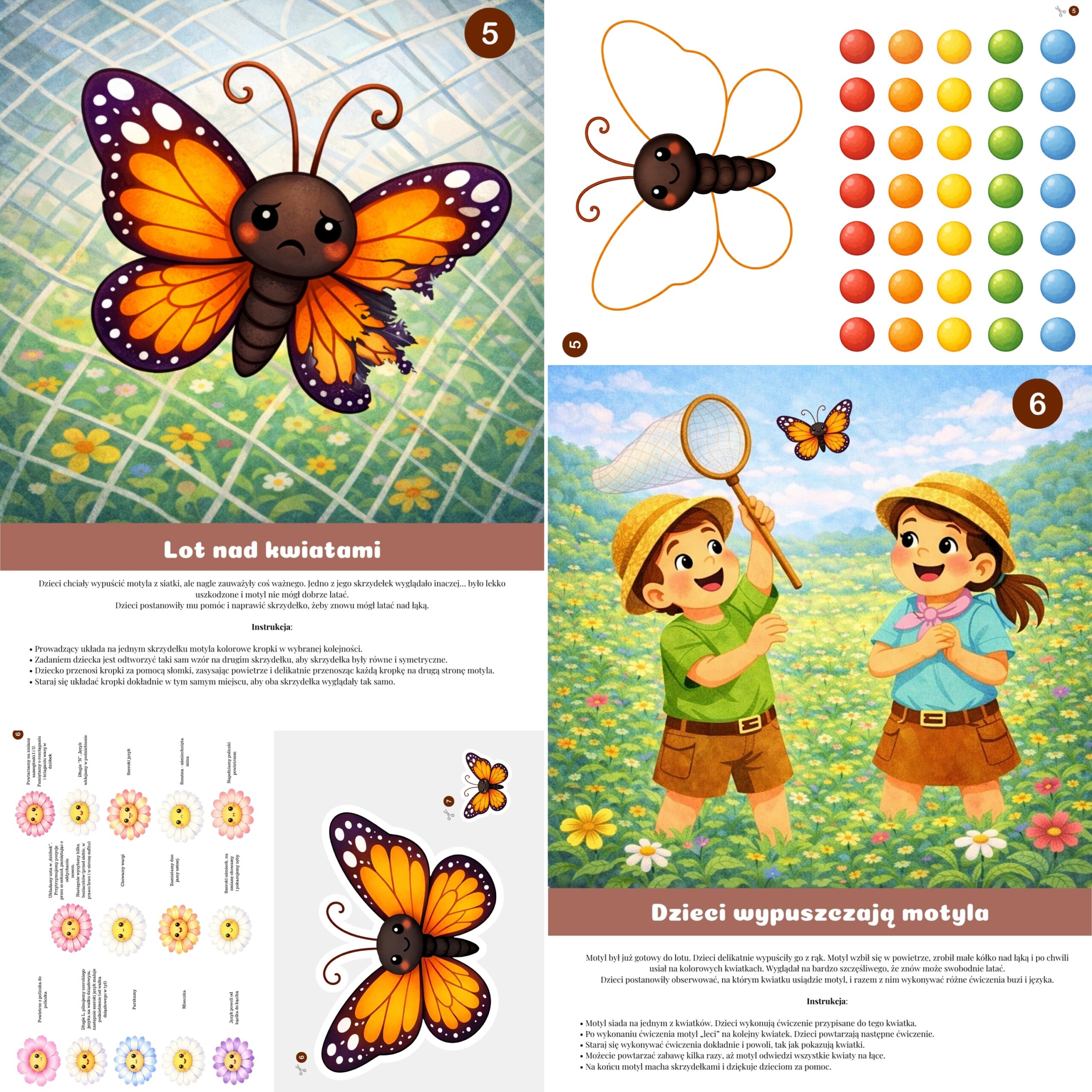 Zapraszam na wspólną wyprawę na łąkę, gdzie dzieci pomagają motylowi, spotykają owady i wykonują różnorodne ćwiczenia oddechowe, artykulacyjne oraz słuchowe.