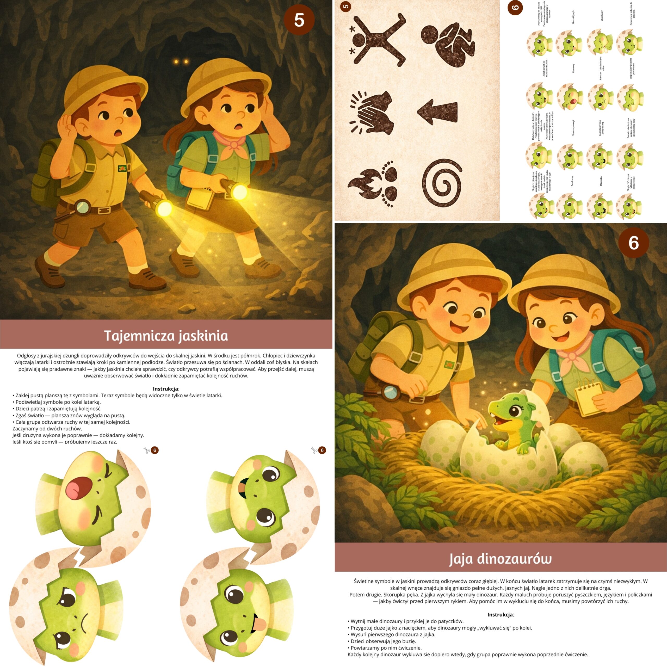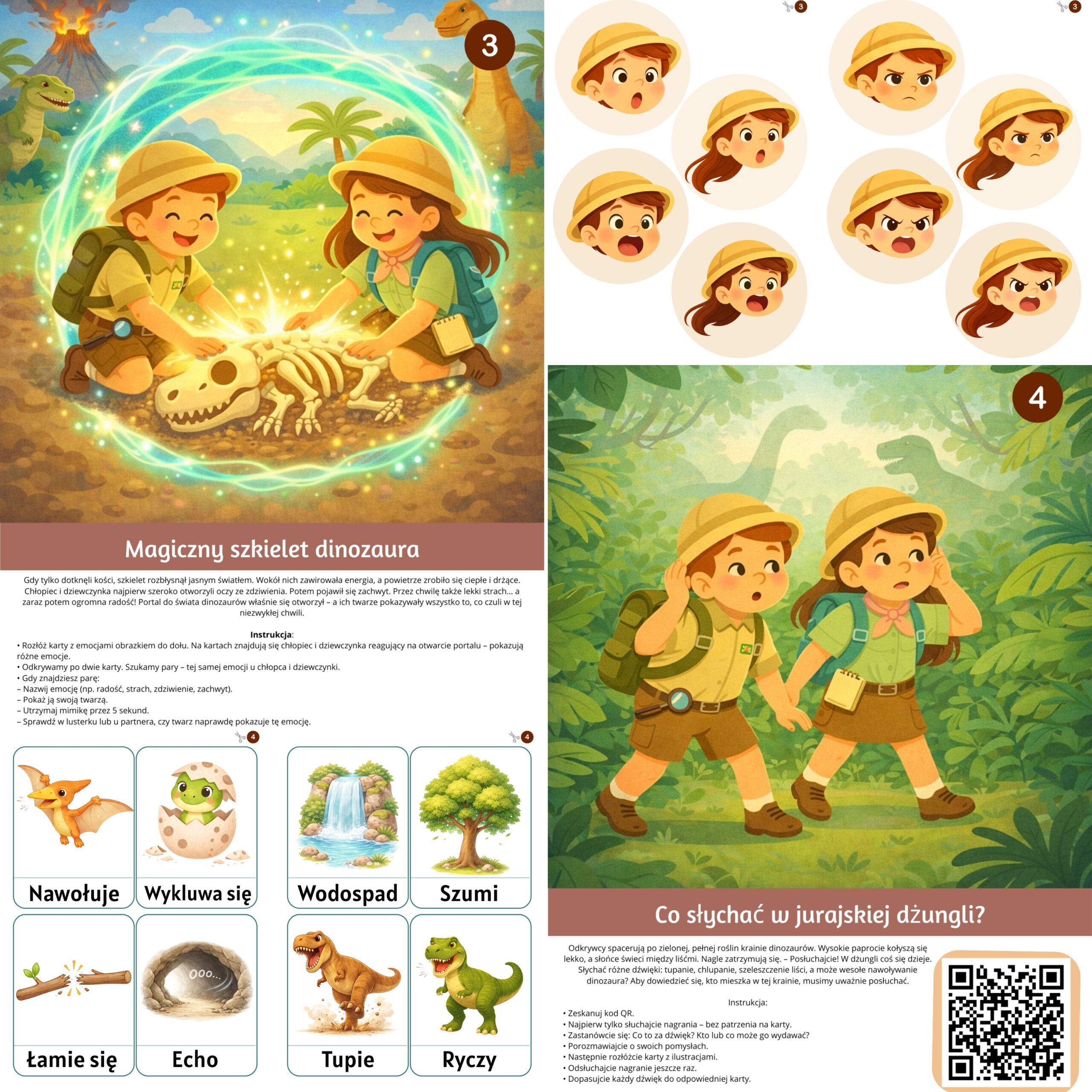 Zestaw „Przygody w krainie dinozaurów” to karty logopedyczne, które dzieci wykonują z radością – bez nudy i przymusu, za to z uśmiechem, ciekawością i prawdziwym zaangażowaniem.