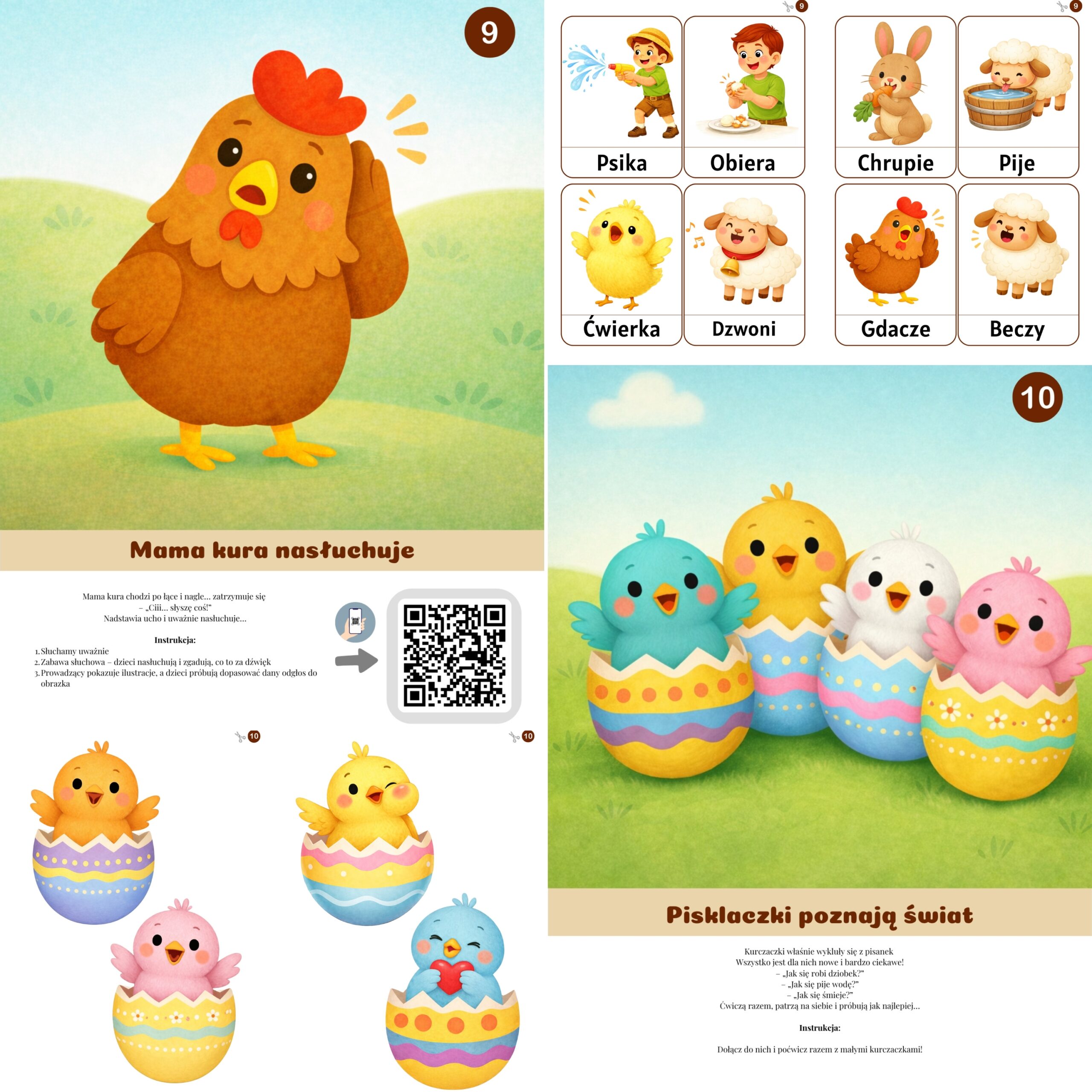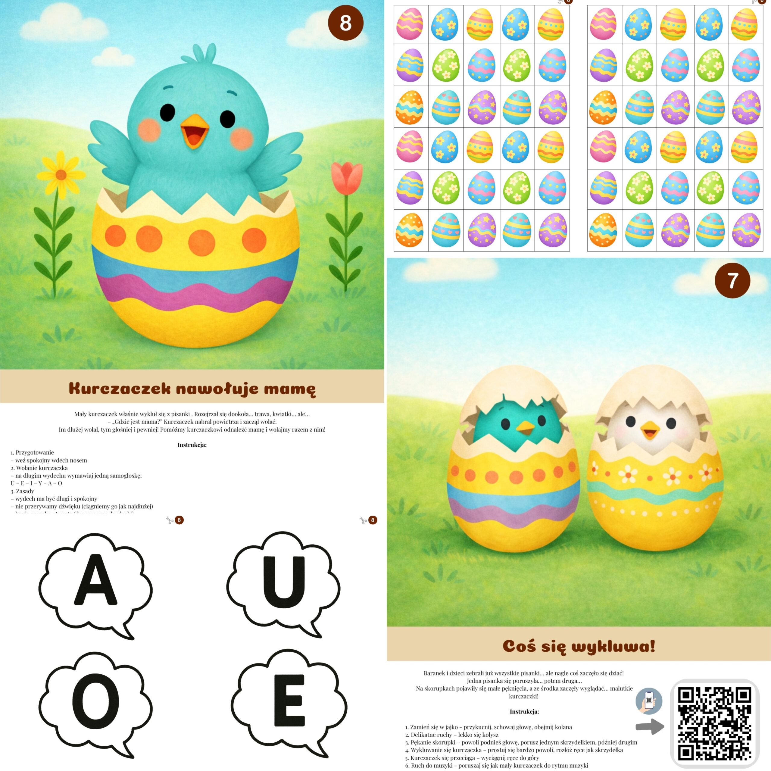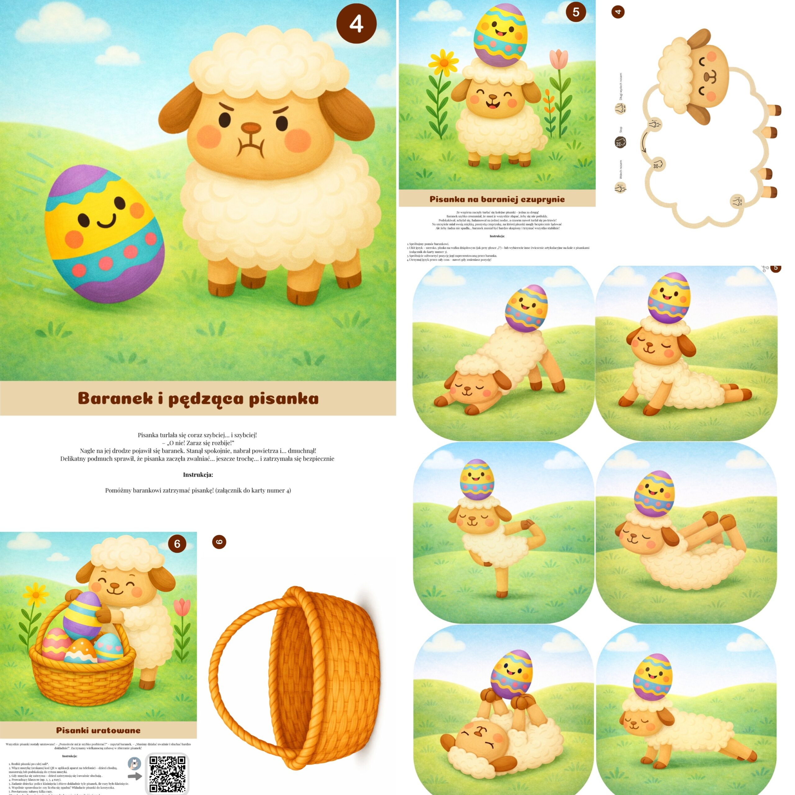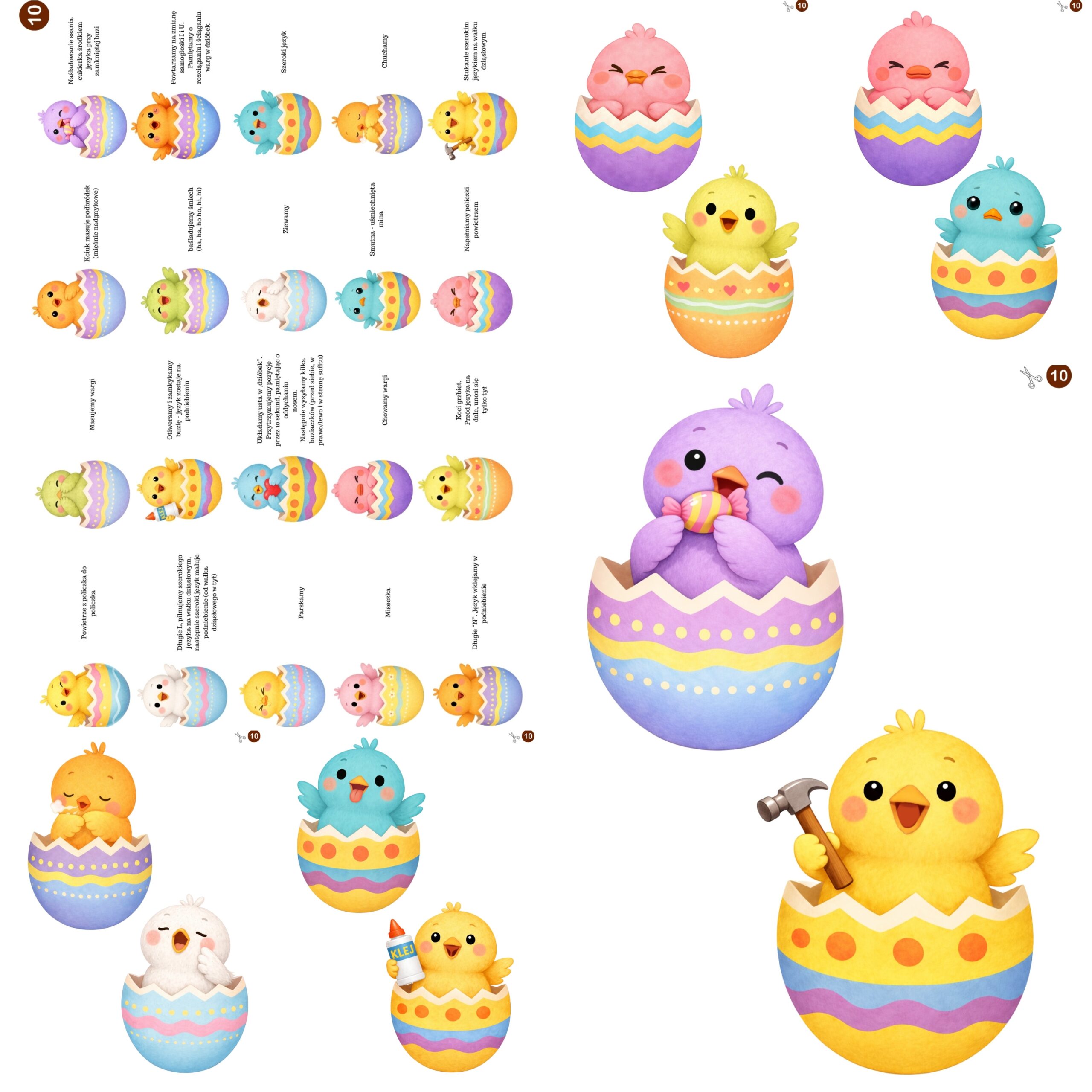 Ten wyjątkowy zestaw to gotowy materiał do prowadzenia angażujących zajęć opartych na spójnej, bajkowej fabule. Dzieci wyruszają w wielkanocną przygodę, w której pomagają odnaleźć i uratować pisanki, a przy okazji wykonują różnorodne ćwiczenia logopedyczne.
