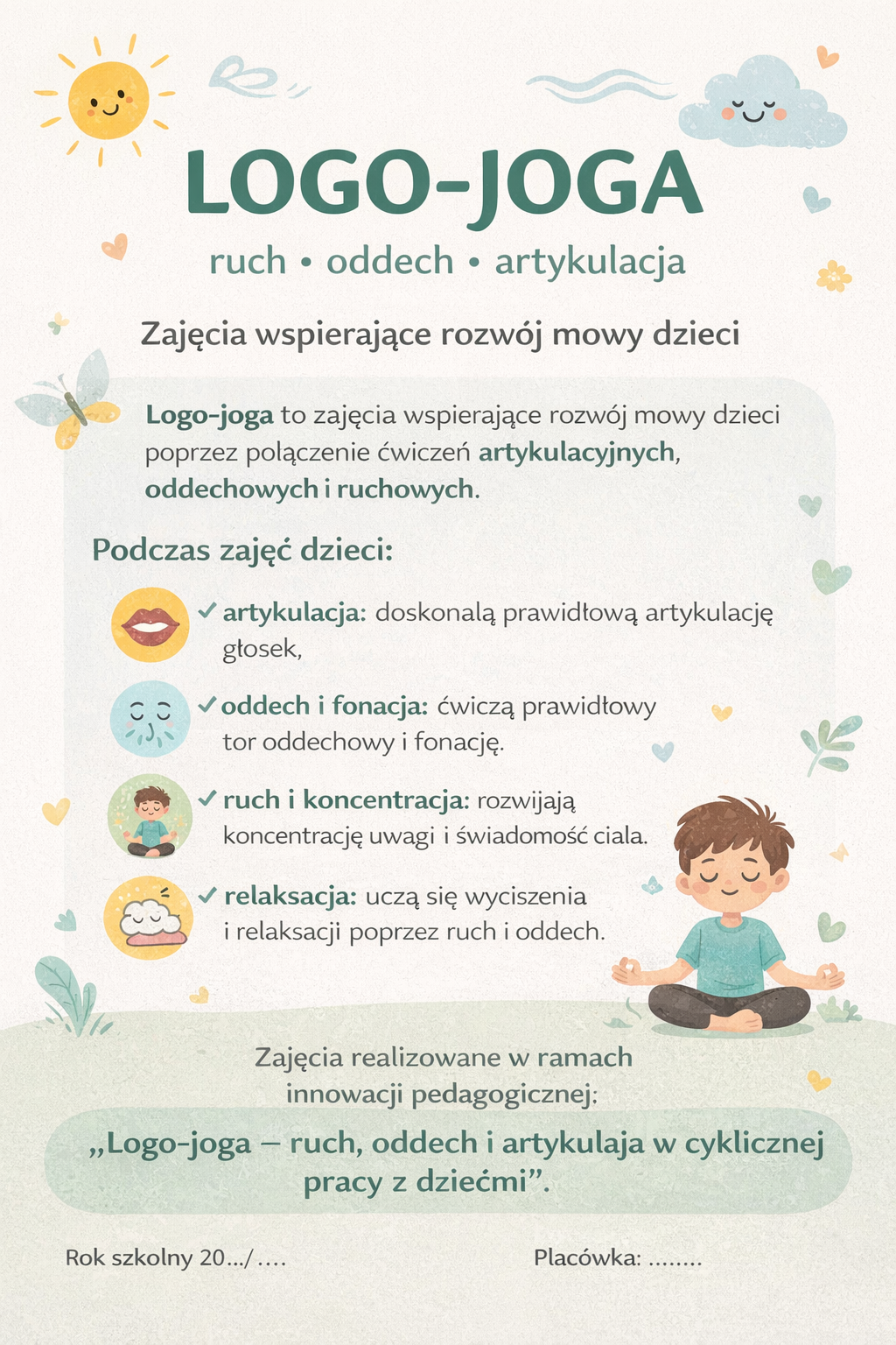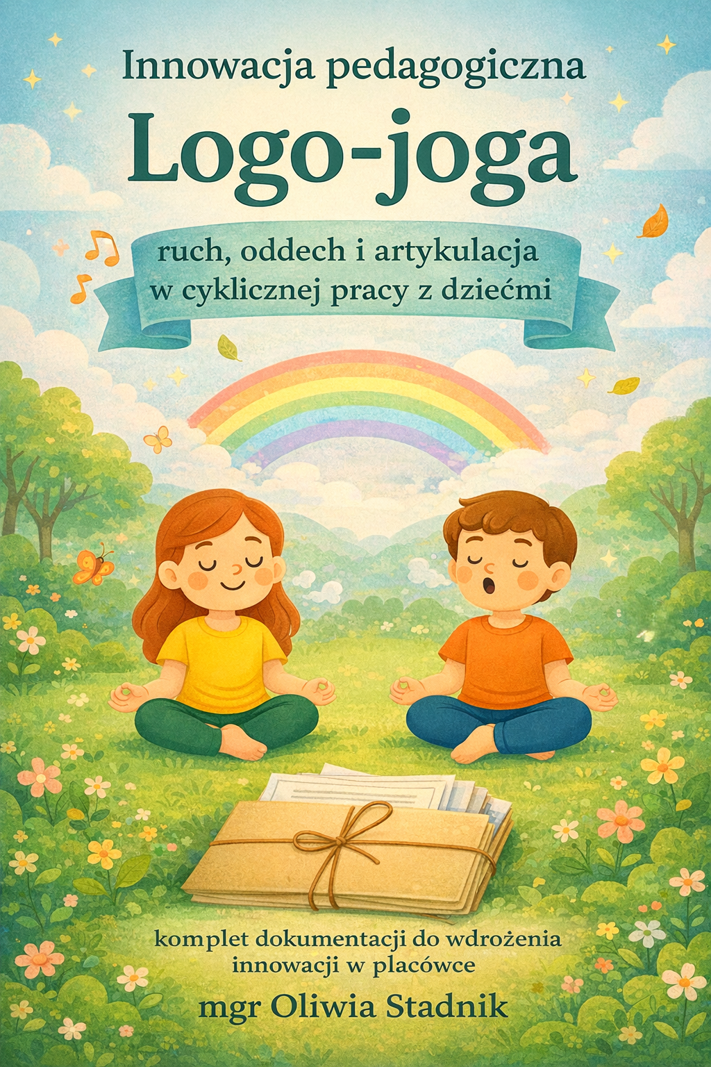 Materiały dydaktyczne (np. karty Logo-jogi) nie są wymagane formalnie do wdrożenia innowacji i mogą być dobierane lub dokupowane przez nauczyciela według bieżących potrzeb – https://mgroliwiastadnik.pl/kategoria-produktu/logo-joga/
